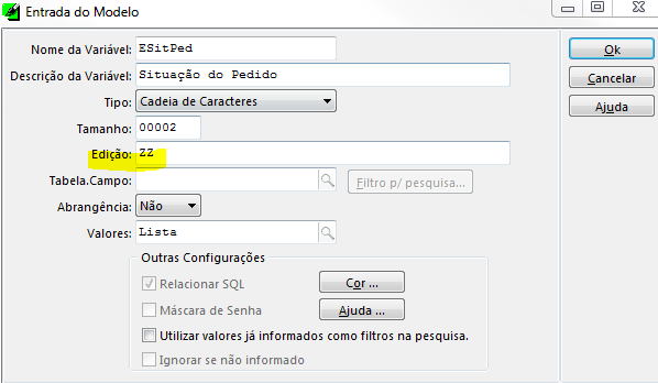 Após alterar a edição do campo para 9 a situação foi resolvida.