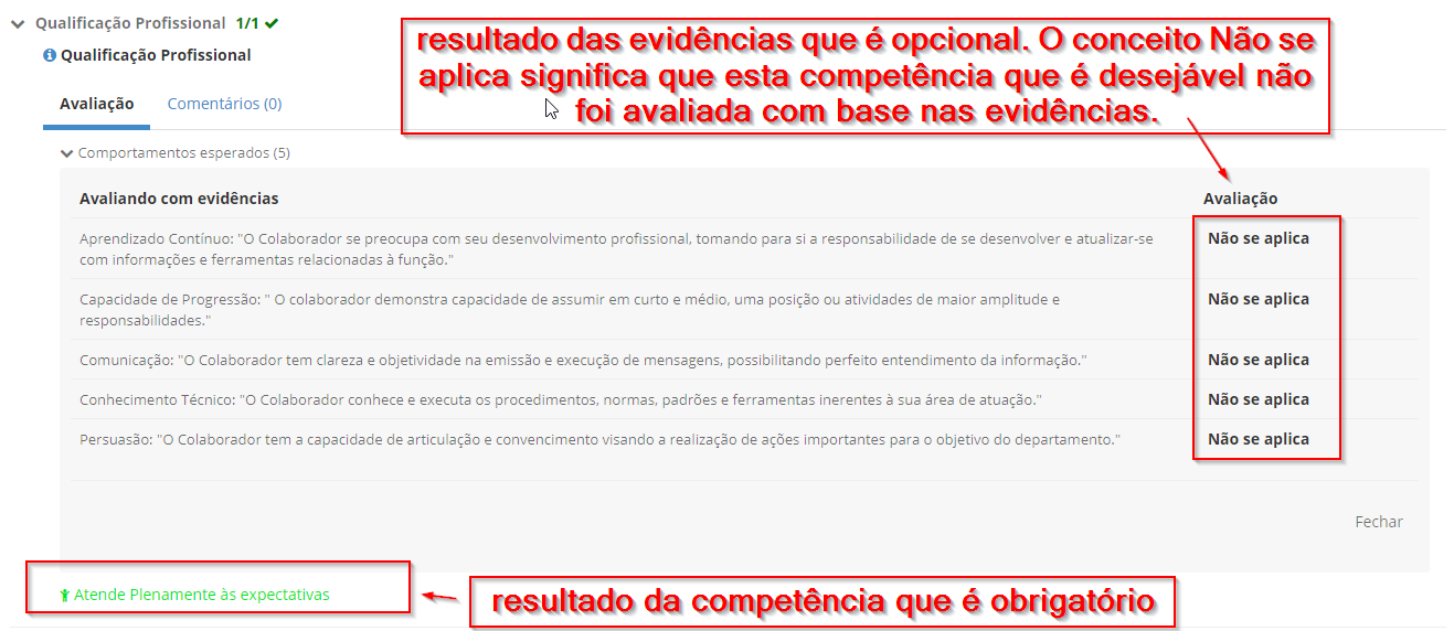 HCM – Avaliação de competência – O resultado para a competência XX não pode resultar em Não se aplica