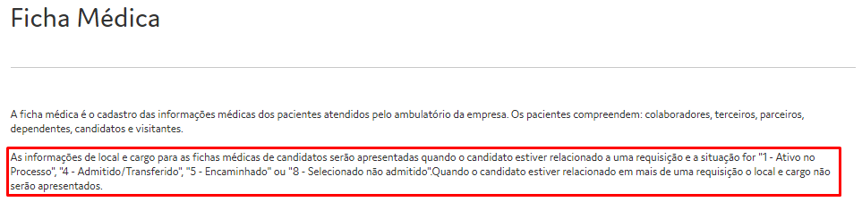 Rotina / Tela: Ficha Médica (FR110FIC) Medicina > Cadastro > Ficha Médica