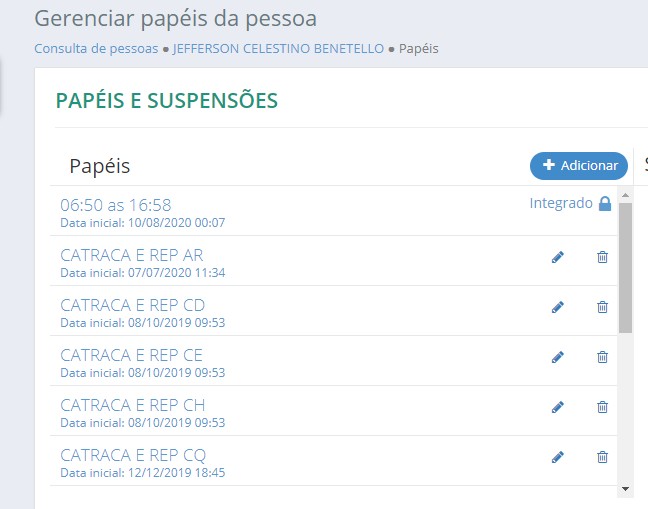 Rotina / Tela: Rotina padrão do integrador do Ronda Senior X.