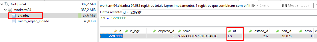 3. Preencha corretamente o campo uf, conforme demonstrado na imagem abaixo: