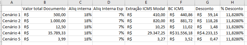 Se todos os produtos do cliente na operação interna são de 18%, nesta operação o valor do desconto pode ser aplicado de forma direta e fixa com o percentual de 11,828%, vide planilha em anexa !screenshot-1.png|thumbnail! .