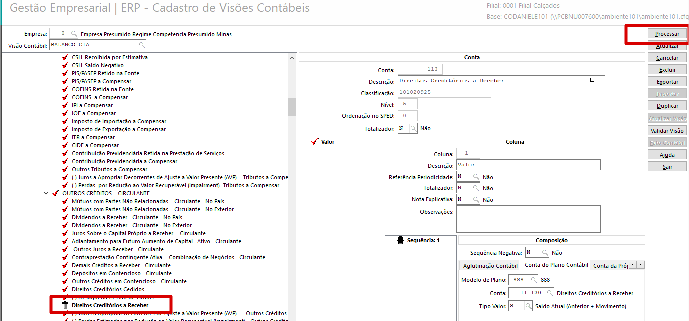 Durante os testes internos, constatamos que nos planos do presumido só existe uma linha 'Direitos Creditórios a Receber', entretanto, no plano do cliente existem 2 linhas com exatamente o mesmo nome.