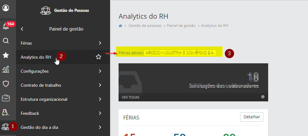 2. Acesse o menu Gestão de Pessoas / Painel de Gestão / Perfil do Rh / Analytics do RH;