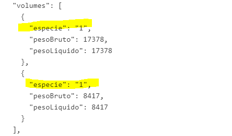 Solução 25972: No payload enviado pelo SILT, está faltando enviar informação no campo espécie, conforme exemplo: