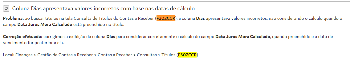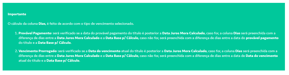 Ao fazer a consulta dos títulos, o campo Dias, está considerando a data de vencimento original e não a data de vencimento atual.