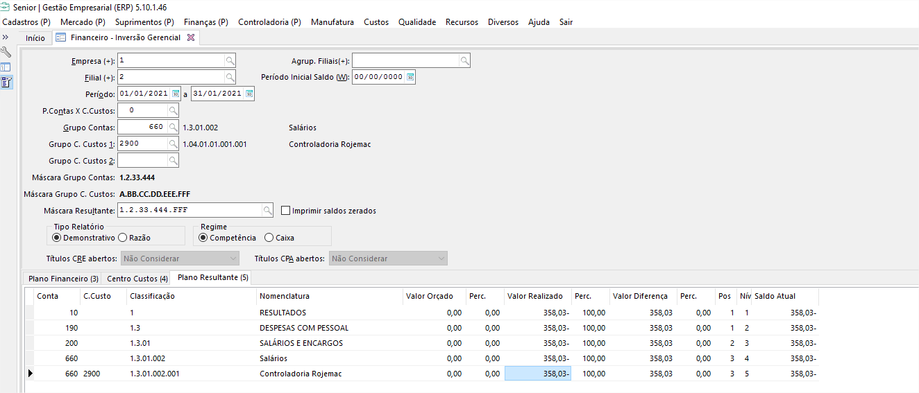 Essa diferença na inversão ocorre para qualquer período, isolei a conta 660 CC 2900 de janeiro: