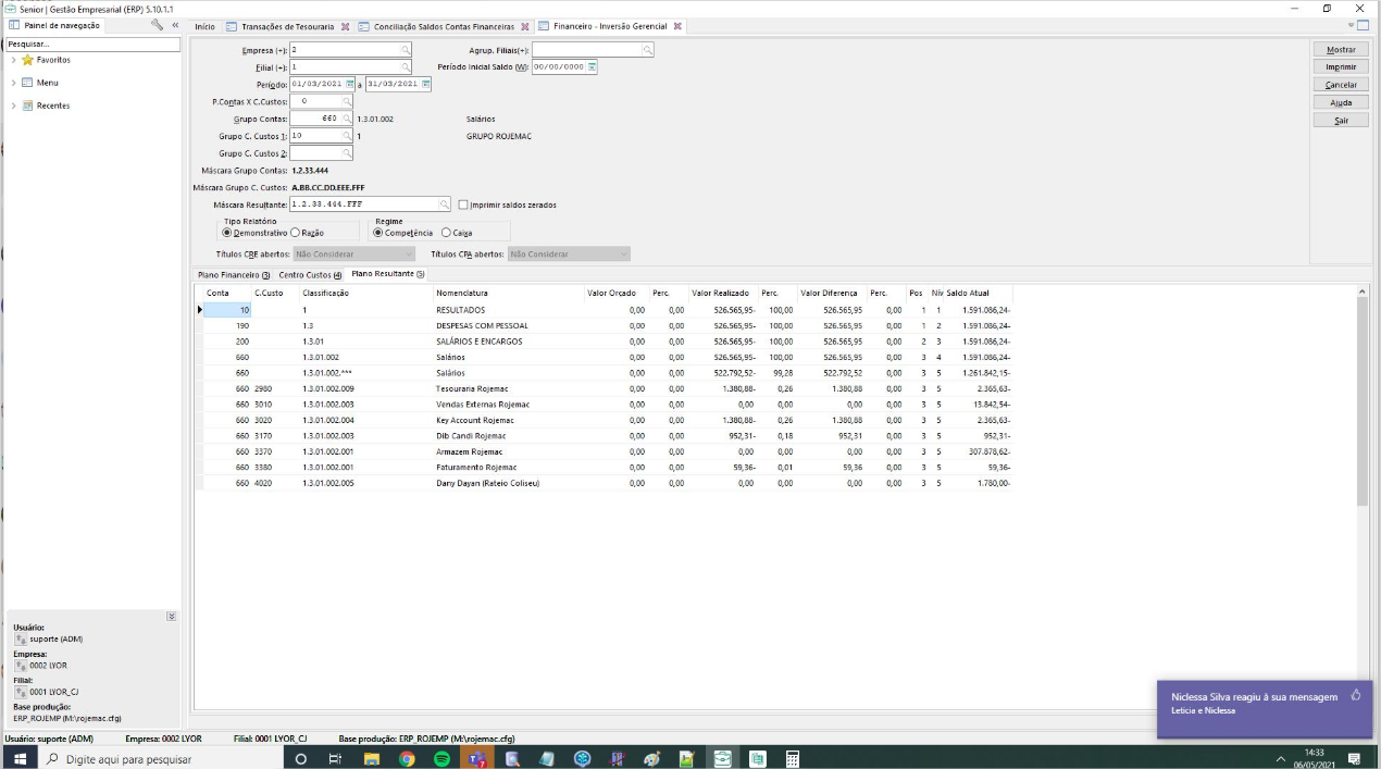 Solução: Após análise verificamos que na empresa 2 as movimentações da tesouraria estavam sendo consideradas na inversão gerencial, zerando o saldo das contas.