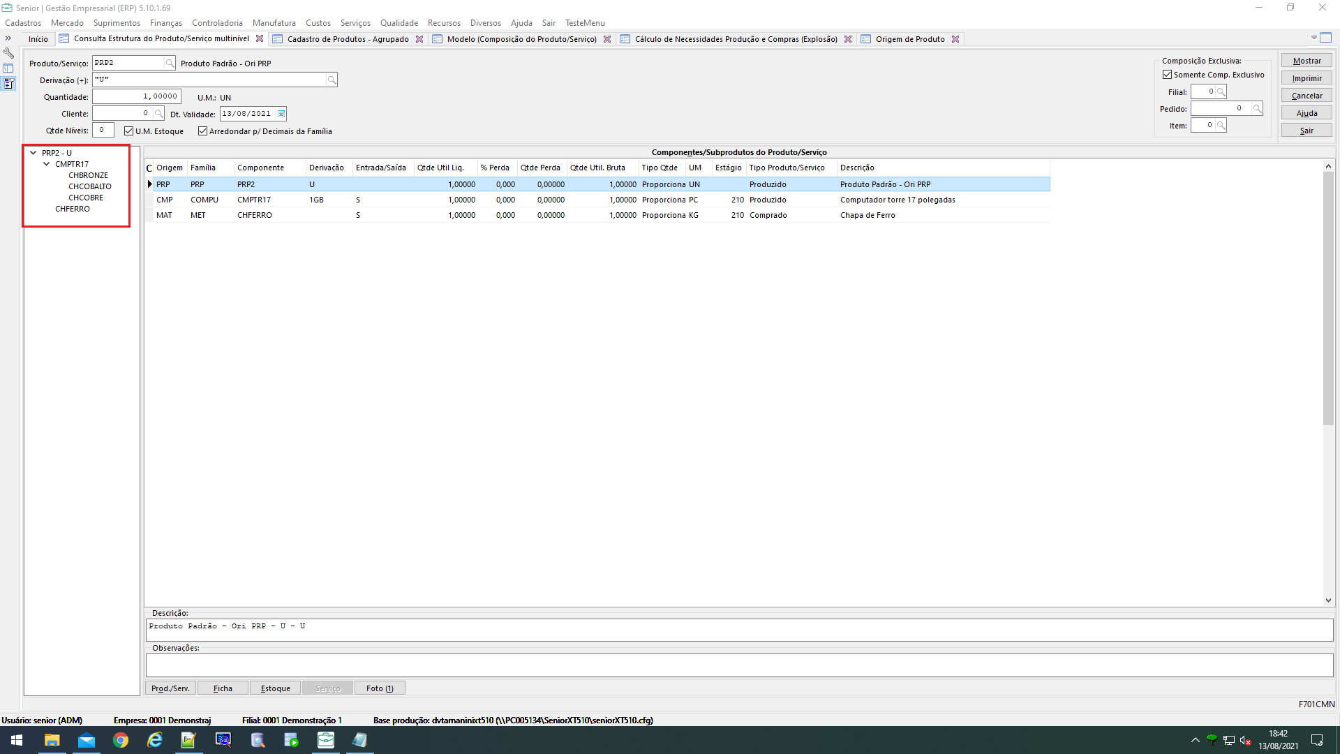Isto acontecerá pois, houve o abatimento/reserva de estoque definido na Origem PAI (PRP2), assim sendo sua estrutura sofrerá este comportamento de reservar os componentes.