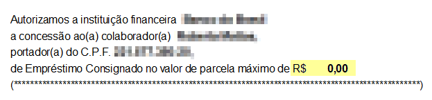 Problema: Descrição do Problema: Estamos listando o relatório 004 - Declaração Empréstimos Consignados (BS00004.EMP), porém o relatório não está listando o valor da parcela máxima. Está listando no valor R$ 0,00: