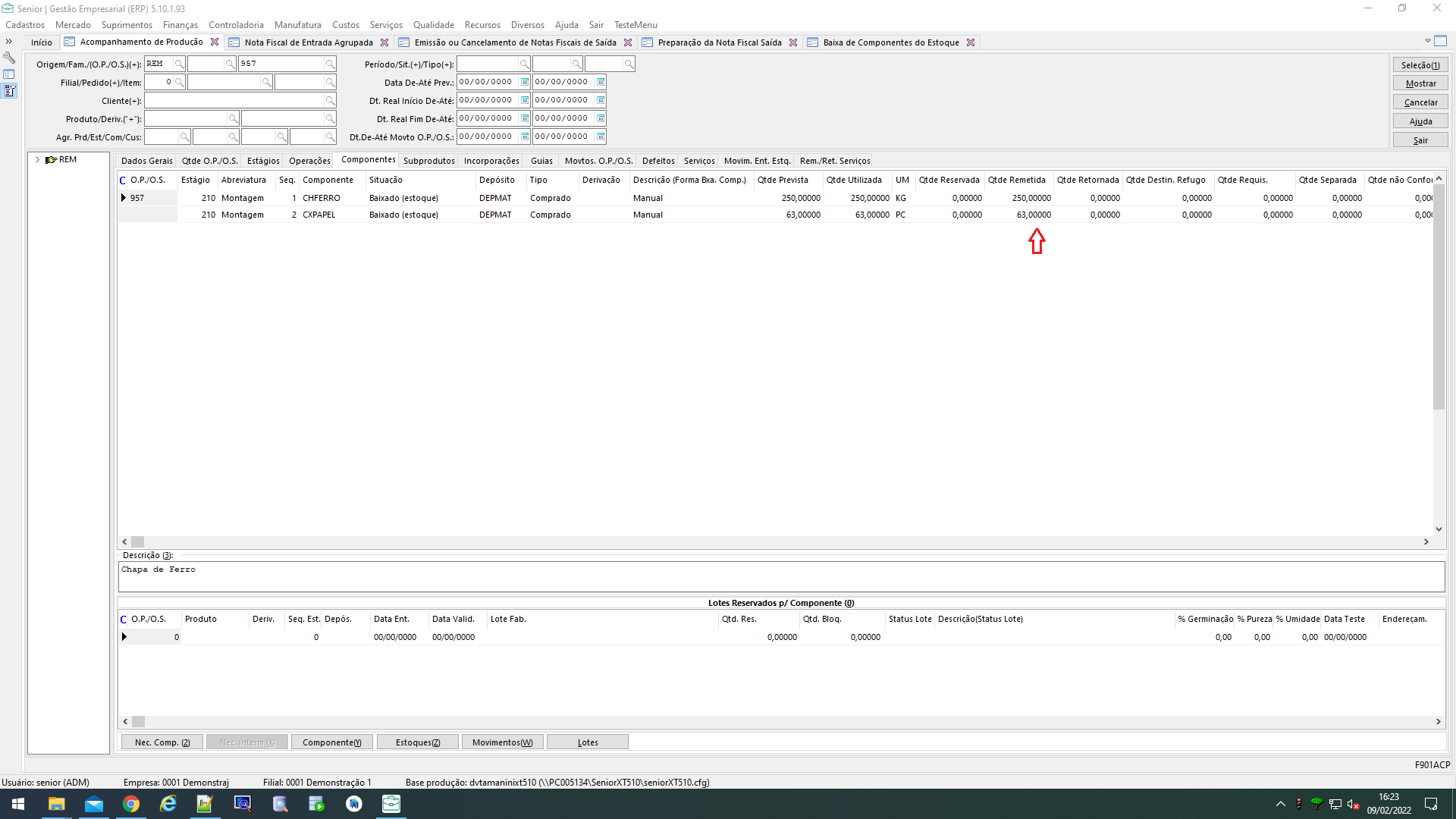 *Há imagens em anexo demonstrando como ficará o rastreamento na OP das remessas e os componentes também.