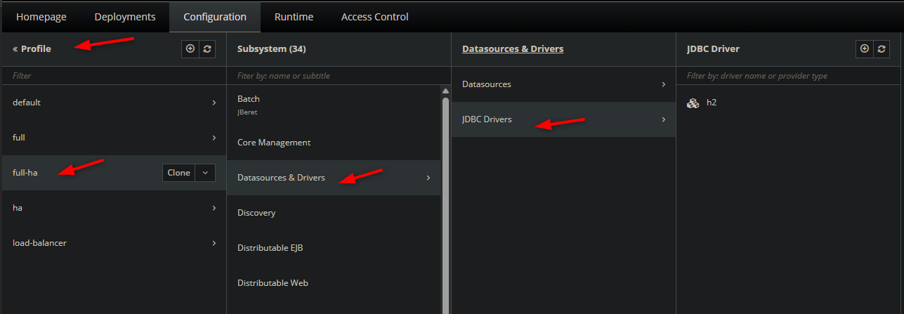- Acesse o menu Configuration \ Profile \ Datasources & Drivers \ JDBC Drivers;