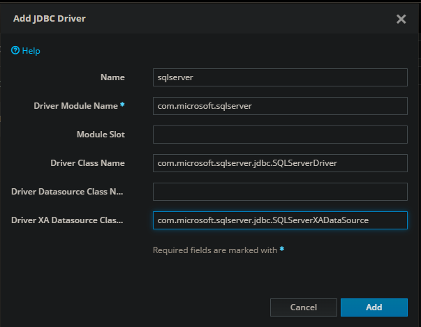 Driver XA Datasource Class Name: com.microsoft.sqlserver.jdbc.SQLServerXADataSource.