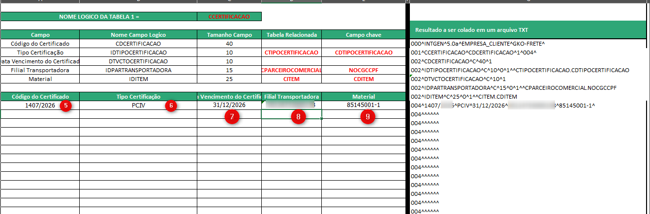 5. Preenche a planilha INTGEN - Cadastro de certificações;