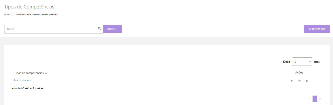 Após concluir a configuração dos Tipos de Competência, você pode avançar para o cadastro das competências propriamente ditas. Esse processo é realizado no menu: