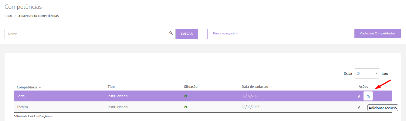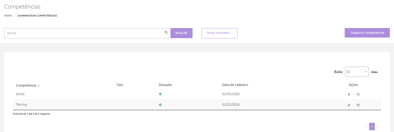 Cadastrando as Competências