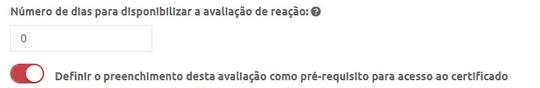 Outro ponto que pode impactar o registro dessa data é a configuração “Definir o preenchimento desta avaliação como pré-requisito para acesso ao certificado”. Quando essa opção está habilitada, o aluno precisa responder a avaliação de reação para visualizar o certificado. Se ele não responder, não terá acesso ao documento — e, consequentemente, a data de certificação não será registrada.
