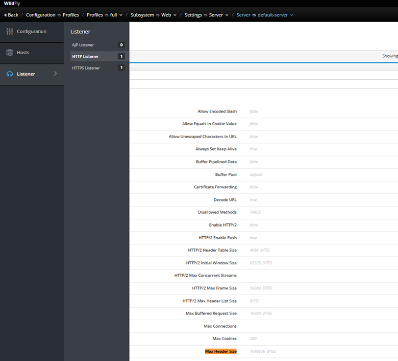 Configurar o valor Max Header Size: