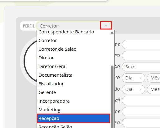 Para criar um perfil Recepção, realize os passos a seguir:
