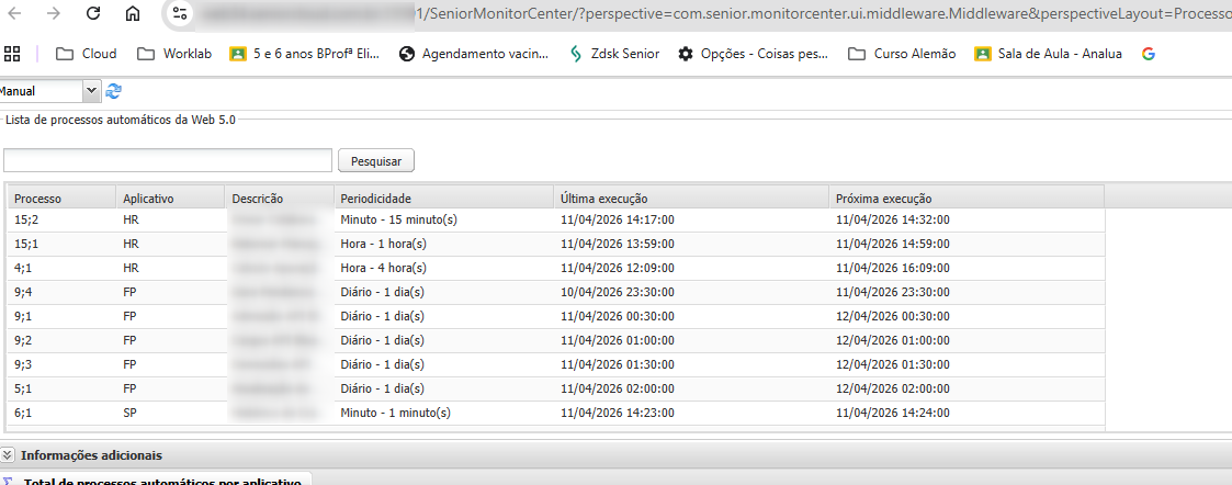 5.1. Na tela de Processos Automáticos você possui uma tabela apresentando todos os processos automáticos que estão ativos no ambiente, contendo: