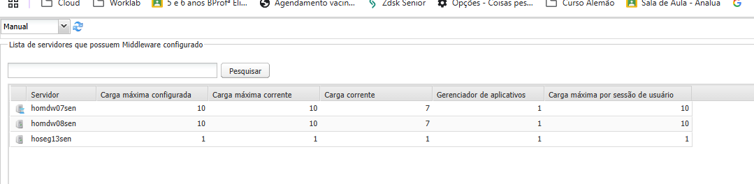 - Acesse o menu Servidores e verifique se há conexão com os servidores do ambiente;
