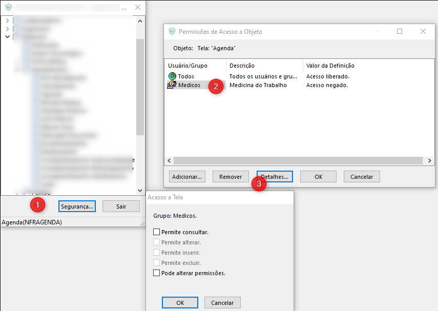 Observação: Este processo deve ser efetuado para cada tela/módulo que deseja ajustar as permissões.